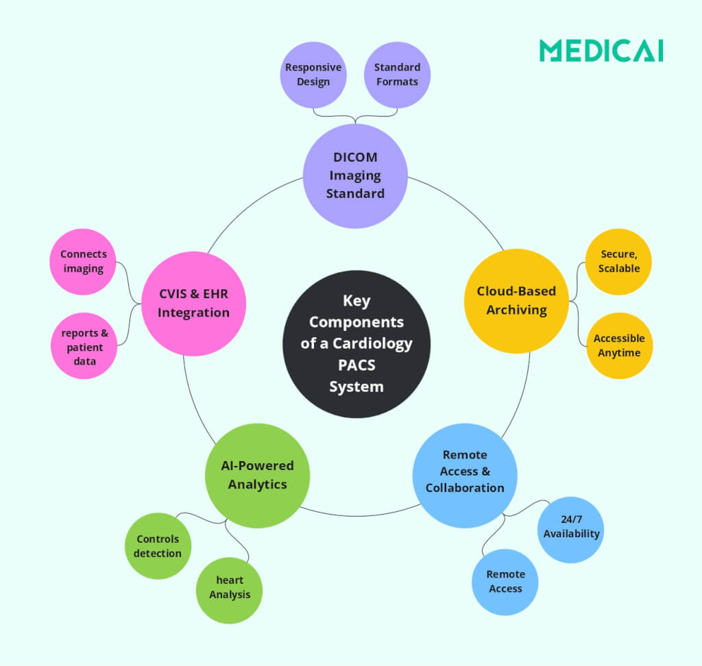 Ein starkes PACS-System besteht aus mehreren wesentlichen Komponenten, die die Kardiologie-Workflows optimieren.