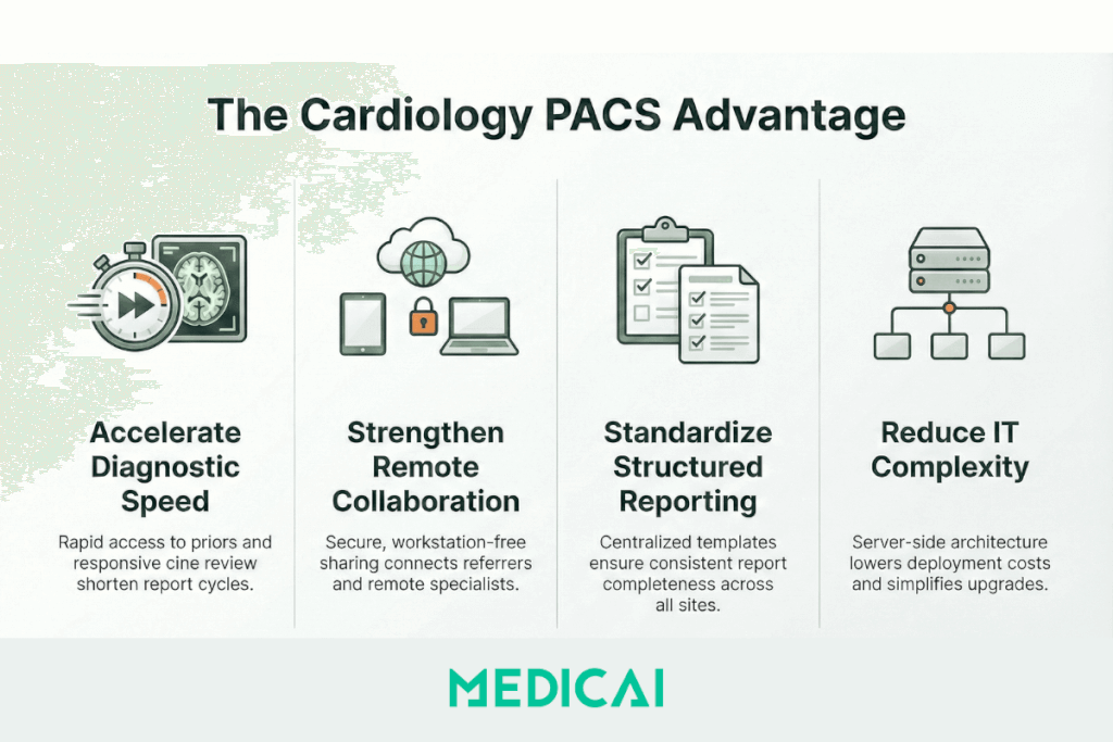 The benefits of cardiology PACS systems fall into four measurable outcomes.