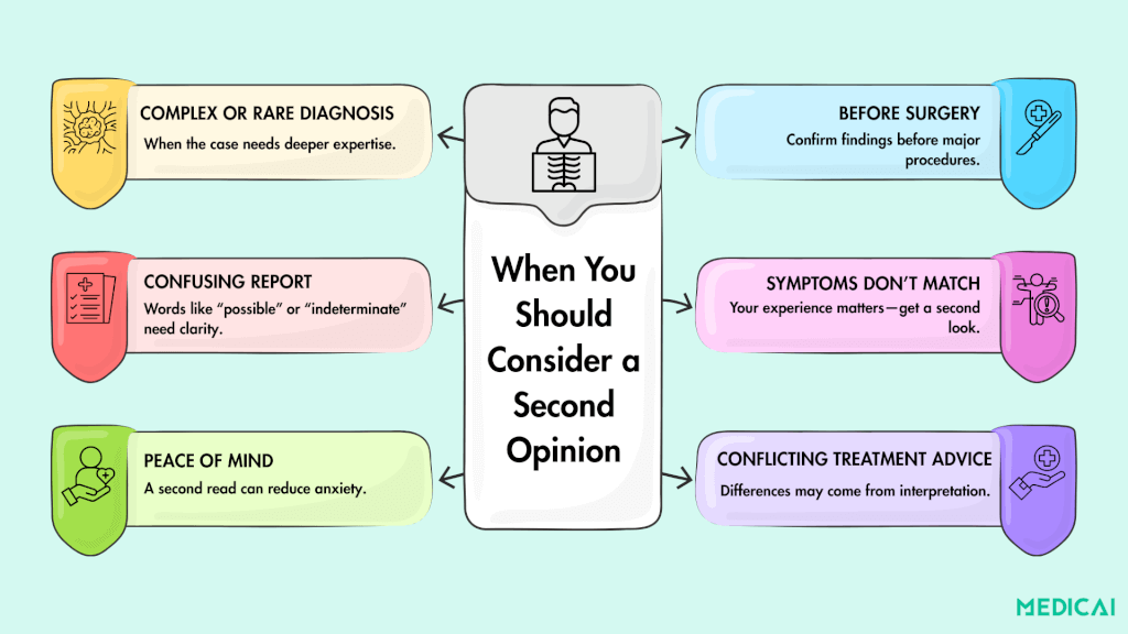 A second opinion helps turn vague language into a clearer answer. Another specialist may read the images through a different lens and provide you with more precise guidance.