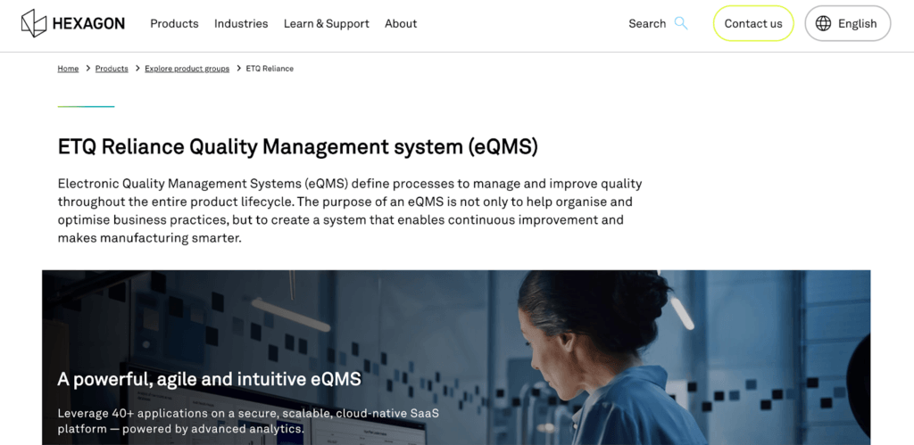 - ETQ Reliance – Configurable enterprise quality platform
