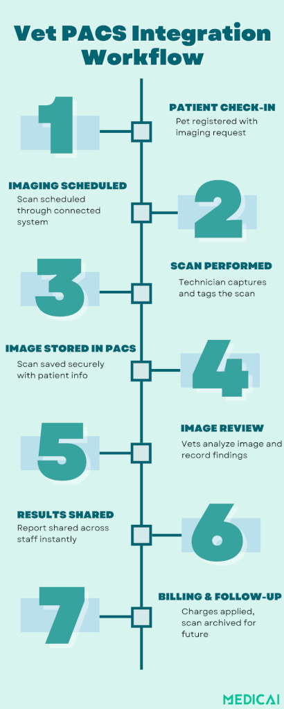 This integration makes life easier for your team. A vet tech can check a patient’s chart, pull up old scans, and schedule a new one, all from the same screen. Radiologists and specialists can review images remotely. Your front desk gets cleaner records and faster billing.