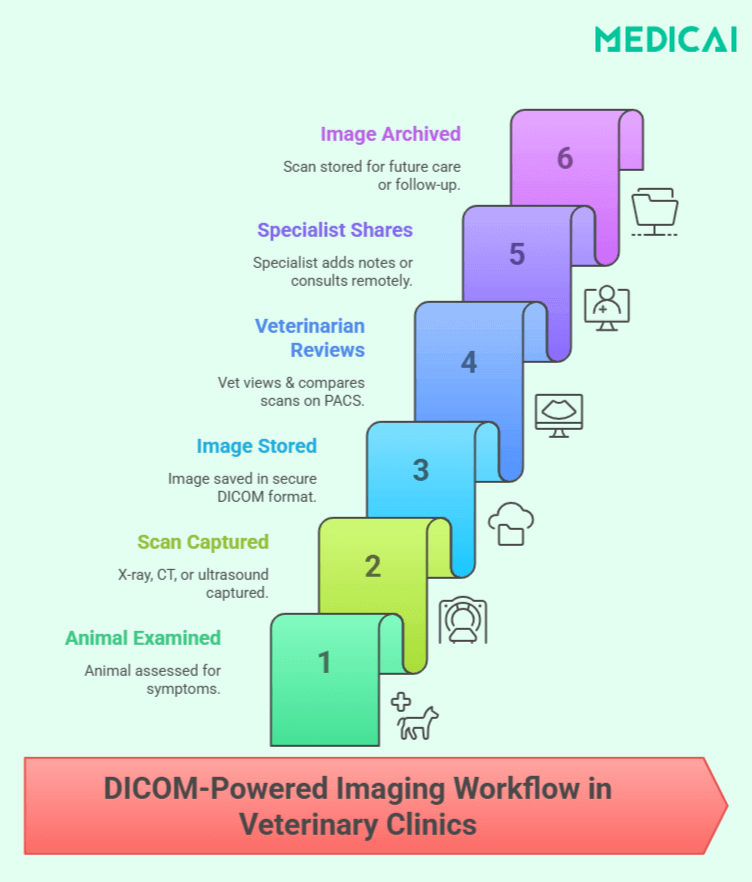 Intégrer DICOM dans les soins vétérinaires combine diagnostics avancés et traitement compatissant. Avec des outils comme Medicai, les vétérinaires accèdent à une imagerie alimentée par l’IA, un stockage cloud sécurisé et une collaboration facile, sans infrastructure complexe. Nous habilitons les cliniques à diagnostiquer avec confiance et à traiter intentionnellement.